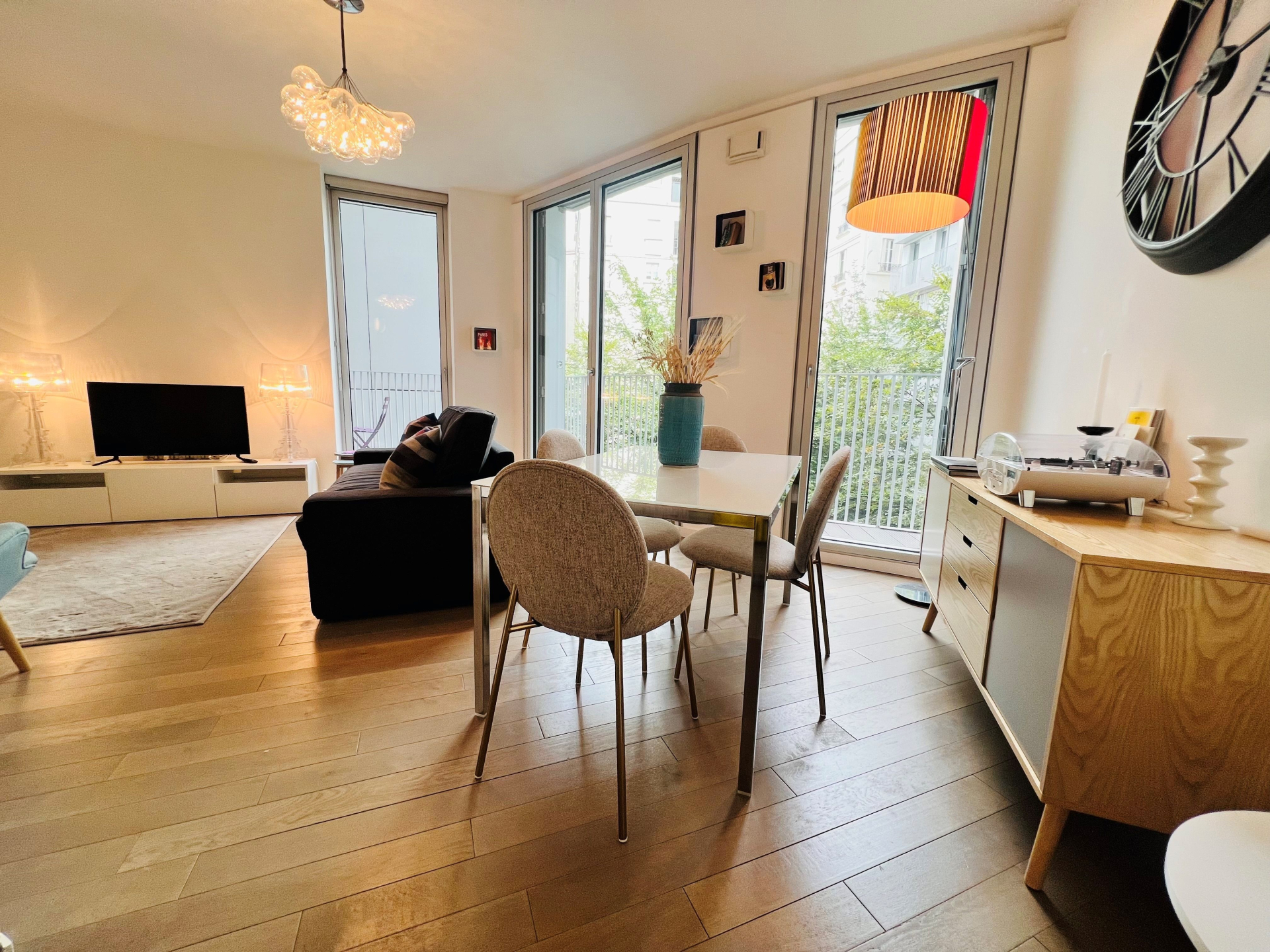 Situé à quelques pas de l'ÃŽle Saint-Louis, dans une résidence moderne de standing sur les quais de la Seine, cet appartement, 2 pièces au 2ème étage avec ascenseur de 48 m² saura vous séduire par ses volumes et ses formes atypiques. Dès l'entrée, dotée de rangements, vous accédez à une spacieuse salle de bain avec WC. La pièce de vie de 24m², lumineuse grâce à ses grandes baies vitrées, s'ouvre sur une agréable terrasse de 8 m² surplombant le jardin calme et verdoyant de la résidence un cadre idéal pour recevoir famille et amis. Un placard intégré dans le séjour offre un espace de rangement supplémentaire très appréciable. La cuisine ouverte, entièrement équipée (lave-linge, lave-vaisselle, réfrigérateur, four), s'intègre parfaitement à l'espace de vie. Dans le prolongement du séjour, la chambre dispose également de son propre espace de rangement, offrant confort et fonctionnalité. Eau chaude et chauffage sont compris dans les charges. Présence d'un gardien dans la résidence. Une grande cave ainsi qu'une place de parking complètent ce bien. .